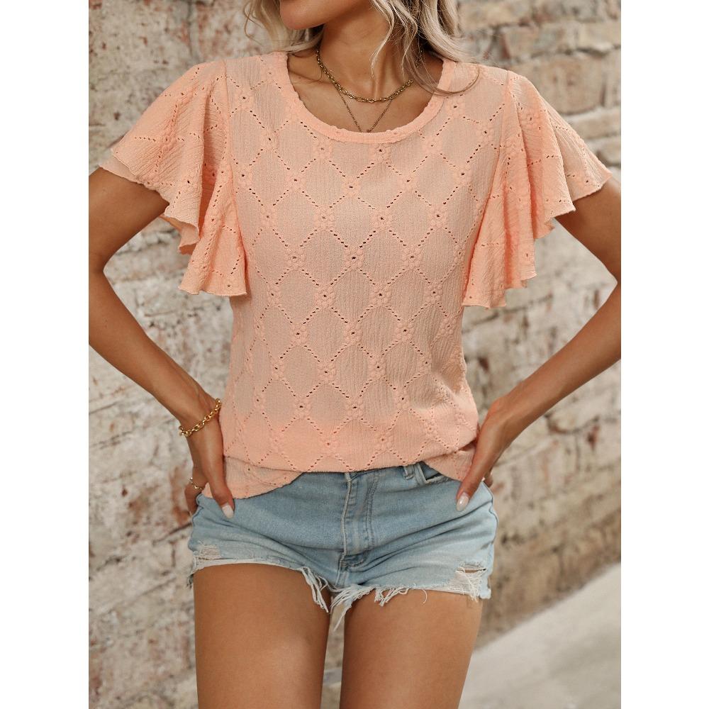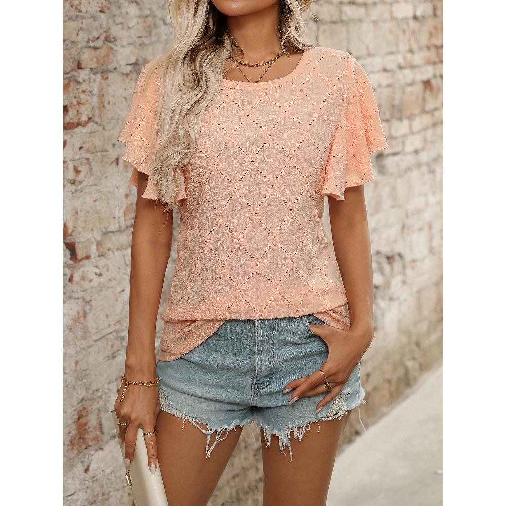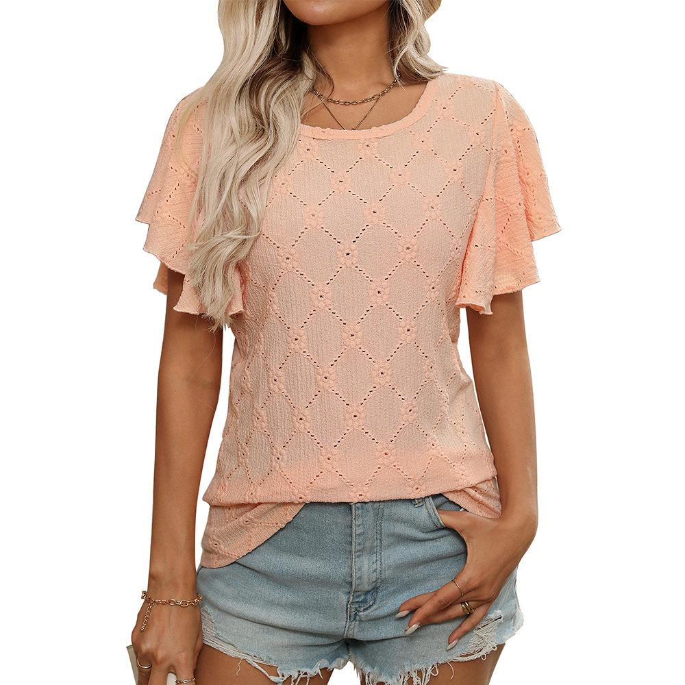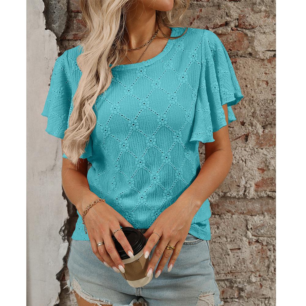 Женская летняя новая футболка с цветочным принтом и рукавами в виде листьев лотоса, повседневный топ