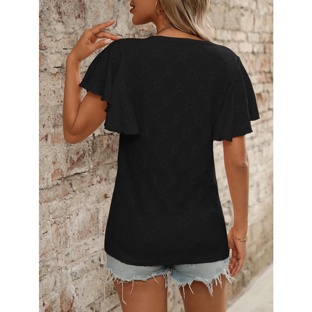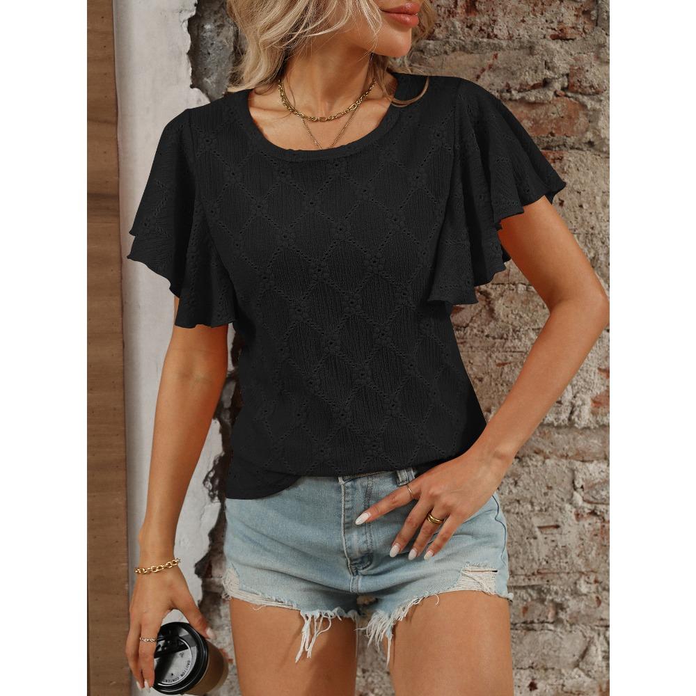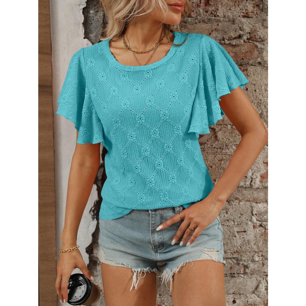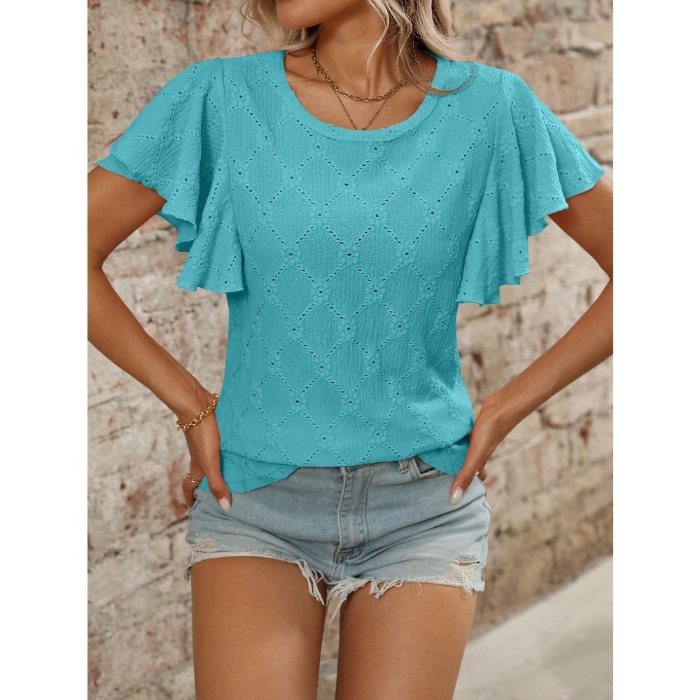 Женская летняя новая футболка с цветочным принтом и рукавами в виде листьев лотоса, повседневный топ