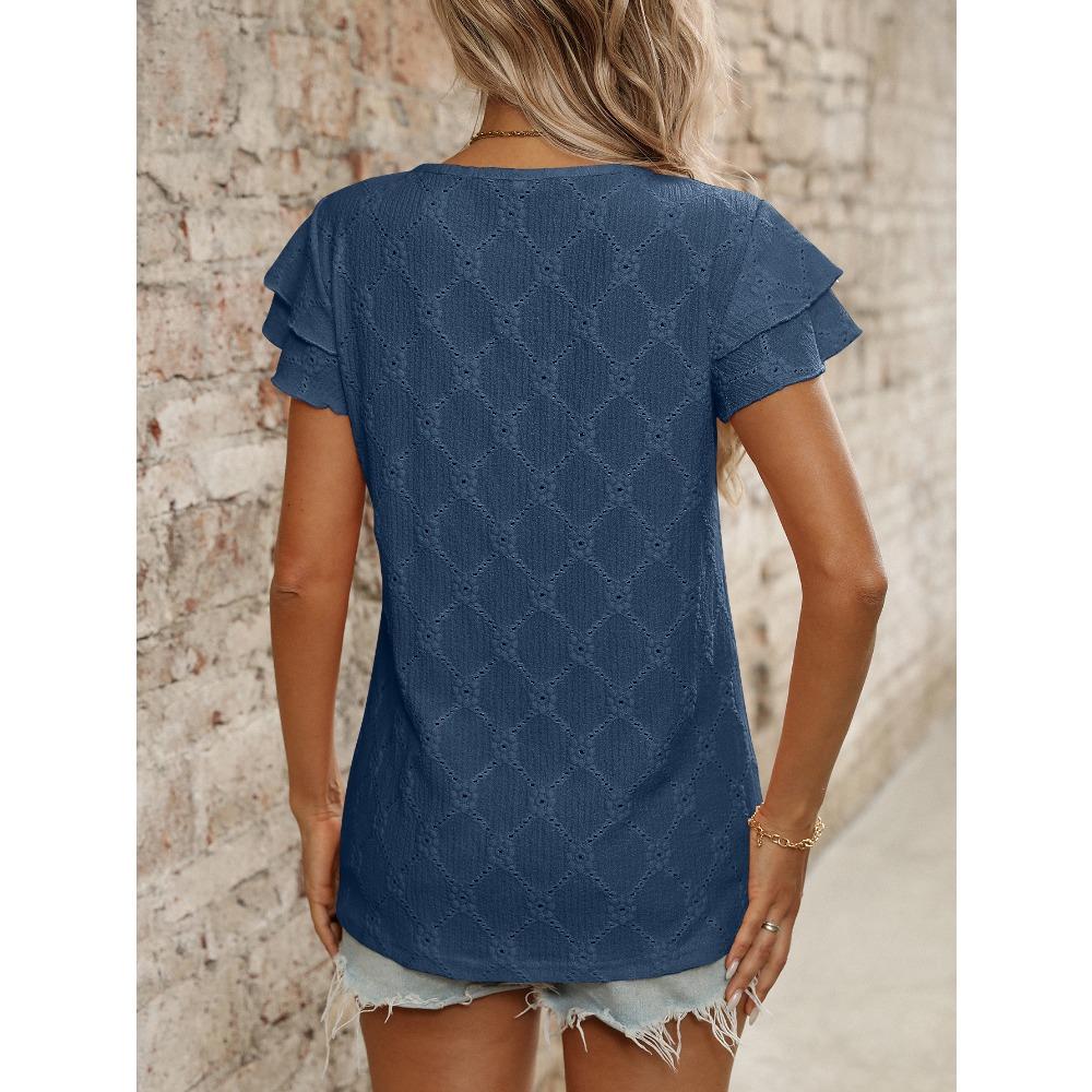 Женская летняя футболка нового стиля с круглым вырезом, однотонная, с короткими рукавами, с вырезом сверху