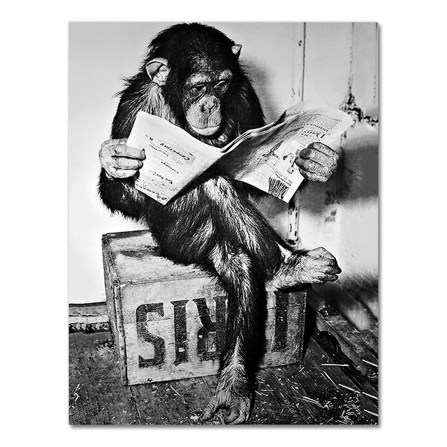Забавный бизнес-плакат с изображением обезьяны и принт на стене, чтение газет, живопись, декор для туалета, черно-белая художественная картина без рамки — купить товар онлайн с бесплатной доставкой до всему миру!