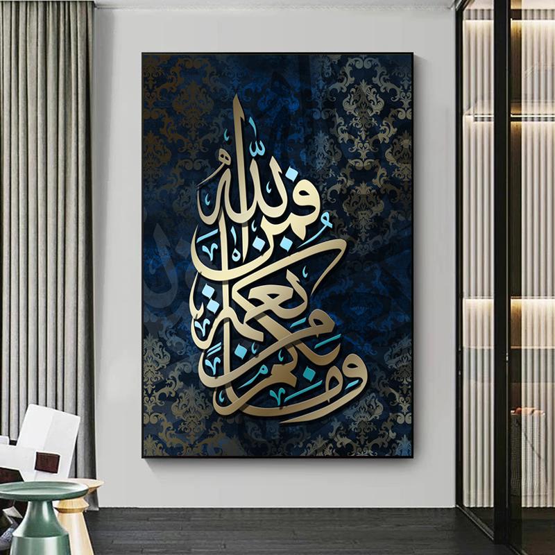 Золотая арабская каллиграфия, холст, настенные художественные постеры, исламская картина на холсте, принты и фотографии для декора гостиной, Cuadros