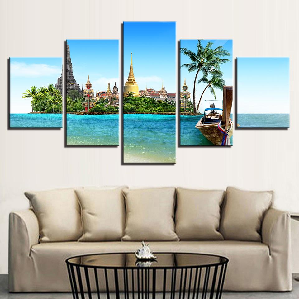 5 шт. настенное искусство холст тропический остров фотографии Таиланд Паттайя Будда плакат живопись гостиная модульное украшение дома