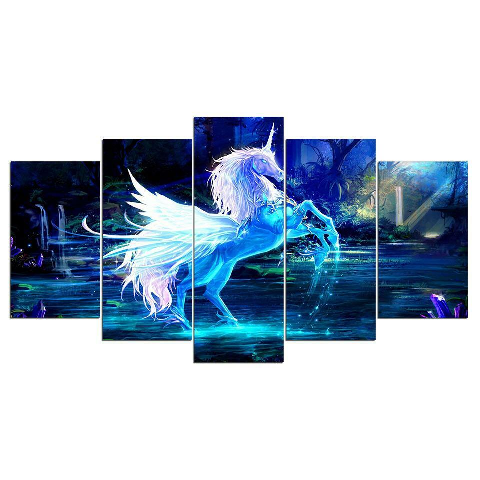 3D белая и синяя фантазийная лошадь, 5 шт., картина на холсте, печать, настенная живопись на холсте, Настенный декор для гостиной — купить товар онлайн с бесплатной доставкой по всему миру!