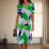 Женская мода изящные геометрические узоры принт лето весна короткий рукав О-образный вырез повседневные платья