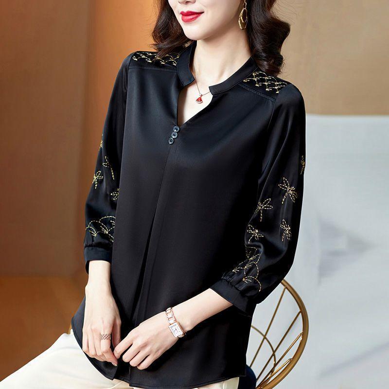 Большие размеры женские блузки весна лето рубашки женская мода повседневная с длинным рукавом отложной топ