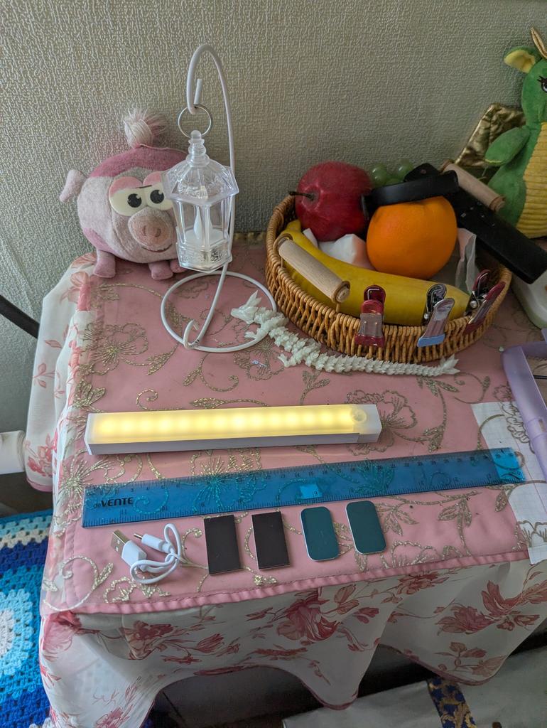Невесомый, свет не такой яркий как я ожидала, но в целом как ночник хороший, датчик движения есть, шнур для зарядки и магниты в комплекте, сколько проработает посмотрим. Идеальное решение для кладовки.