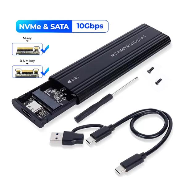 Внешний корпус твердотельного накопителя NVME M.2 2230/2242/2260/2280 M.2 на USB C 10 Гбит/с SSD Алюминиевый корпус Тип A+C для ключа M/M+B