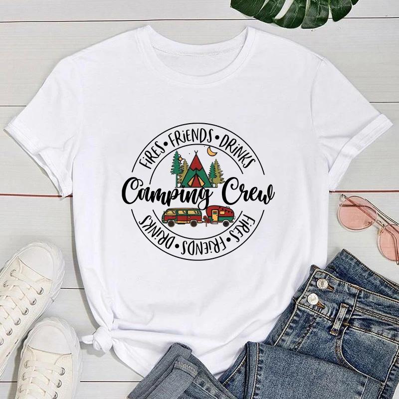 (Премиум-футболка)Костры Друзья Напитки Кемпинг Команда Принт Буквами Футболки С Забавной Надписью Девичья И Женская Мода Графическая Футболка