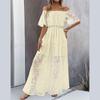 Женское летнее повседневное белое платье с открытыми плечами и вышитым кружевом с высоким разрезом
