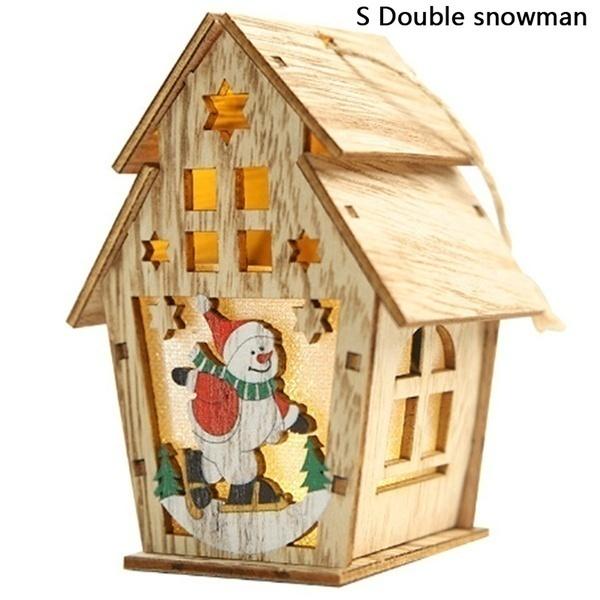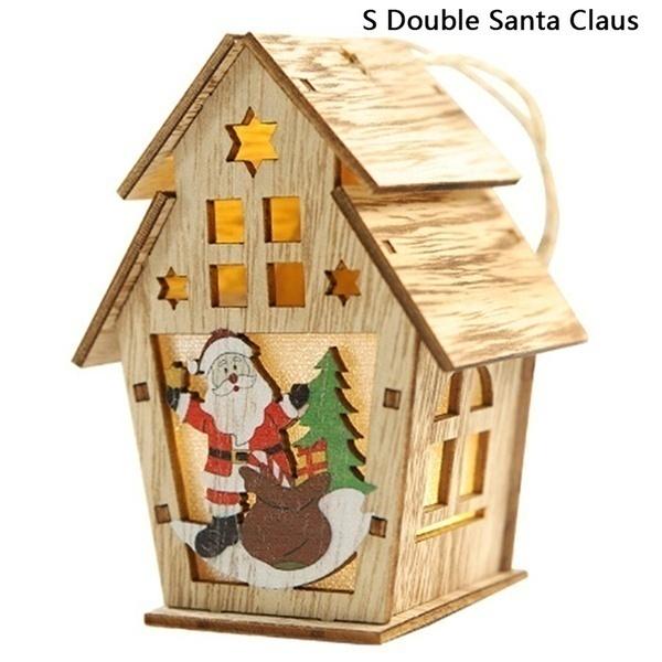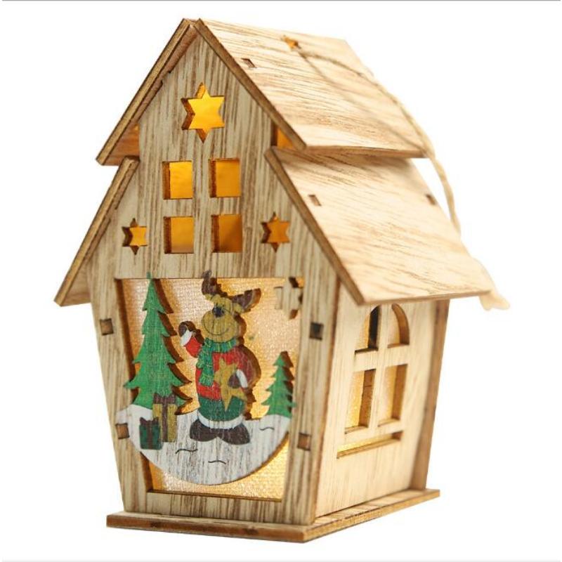 1 шт. Рождественские украшения для елки Светодиодная подсветка Деревянный домик Милые подвески на елку Праздничный домашний декор Товары для вечеринки