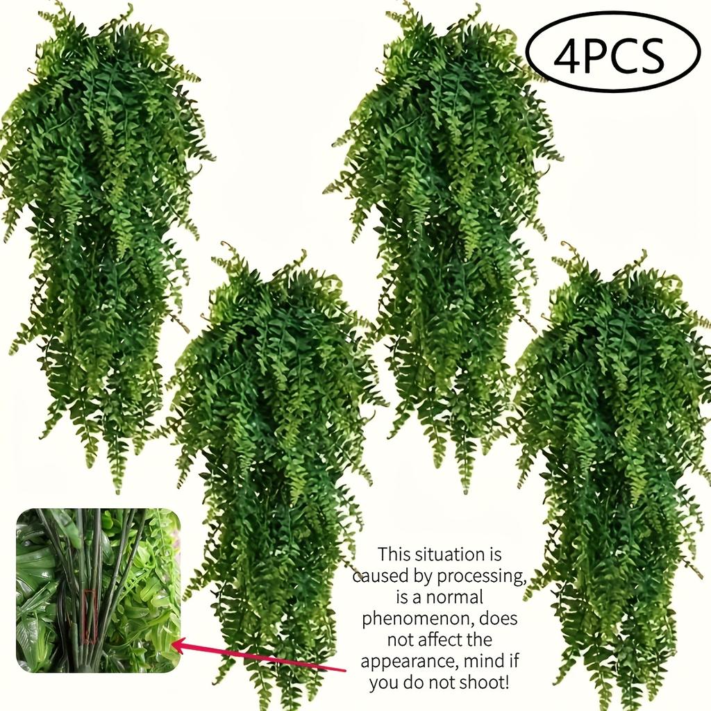 4 шт. искусственных папоротника - УФ-устойчивый пластиковый настенный декор для внутреннего и наружного использования, украшения вечеринок | Натуральная зеленая листва | Прочный пластик