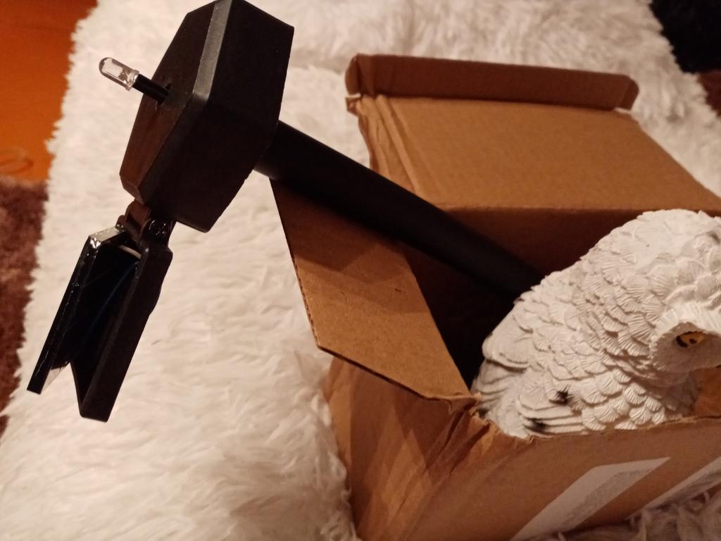 Пришла сломанная. верните деньги. Сова на выброс в помойку. Отломан фиксатор между стойкой и совой.и его вообще нет. Даже отломаного И батарея выпавшая из фиксатора, в котором она держится. Заказ бракованный пришёл. Обидно.