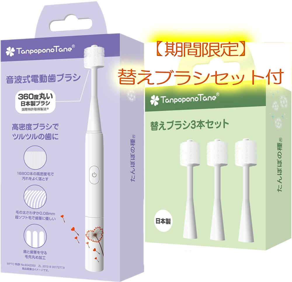 Зубная щетка Dandelion Seed Звуковая электрическая зубная щетка 360 градусов 3 сменные щетки Ультратонкая Для электрической зубной щетки + Набор, Щетина, Взрослые,