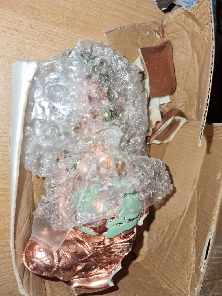 Нога у статуэтки раскалолась из-за плохо упакупакованного товара. Она не годится ни для дома, ни для подарка!!! Судя по отзывам-не только мне так " повезло"!!! Или заранее уже торгуют браком? 🤔🤔🤔