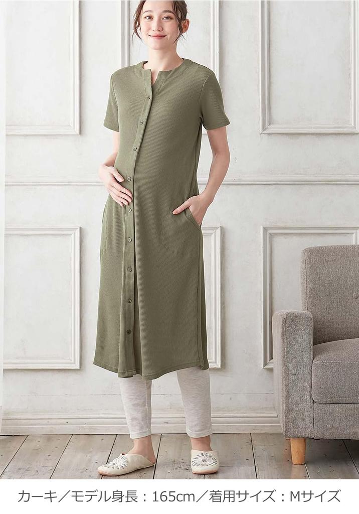 Родильный уход открытая вафельная x короткая роды госпитализация L Хаки [ANGELIEBE] пижама, одежда, спереди, джерси, 2WAY, рукава, дородовой,