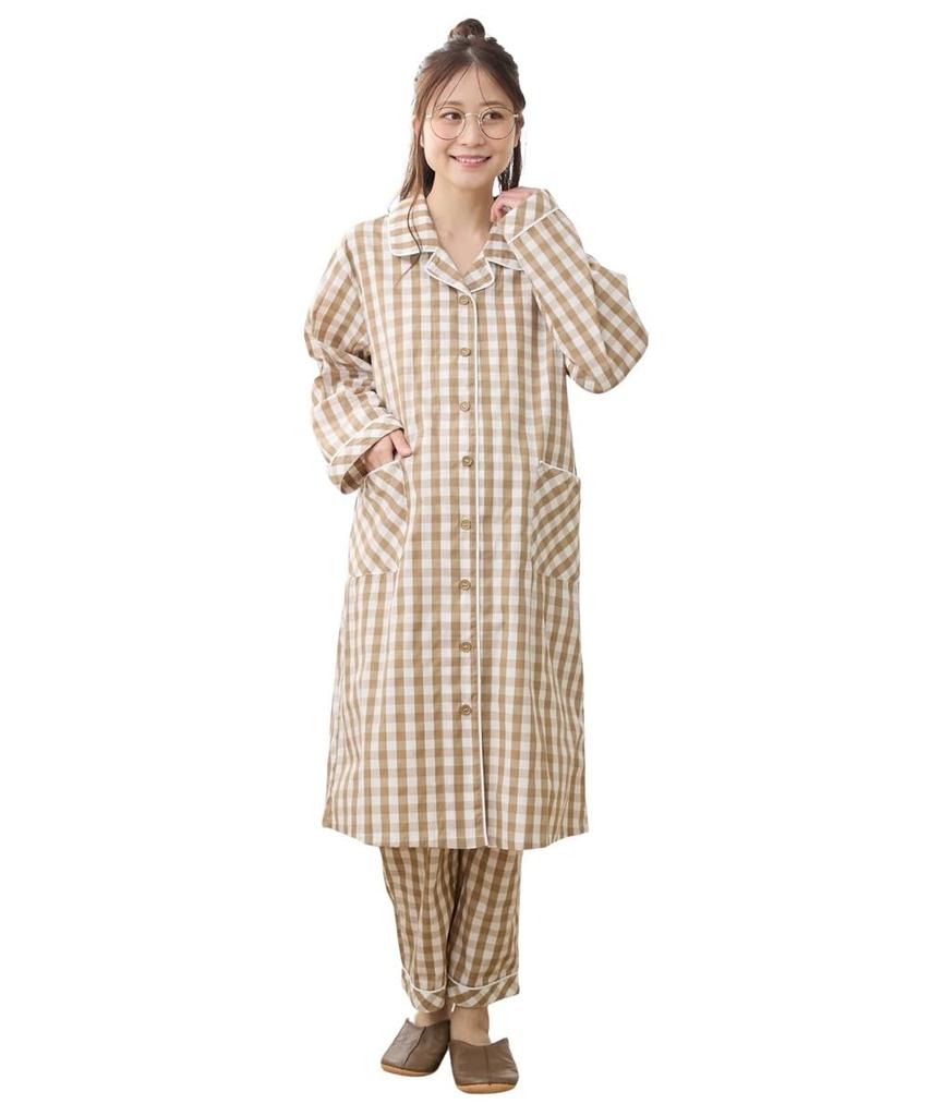 Этот комплект из рубашки и пижамы выполнен из шелковистой и приятной на ощупь ткани, окрашенной в пряже, которую можно носить в течение 275 дней весной, летом и осенью.