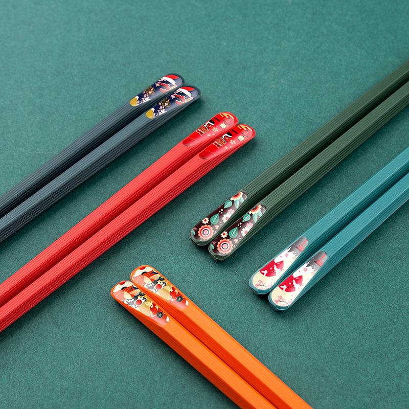 Палочки для еды из сплава с острыми концами в японском стиле, противоскользящие, семейные палочки для еды на одного человека и одну палочку