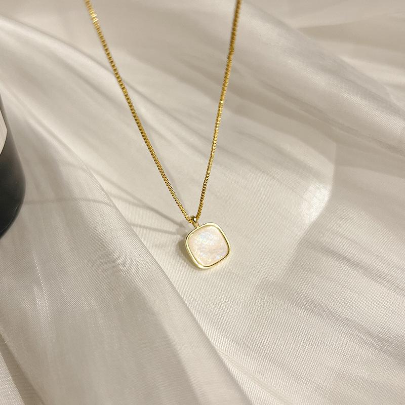 Квадратное ожерелье женское легкое роскошное нишевое дизайнерское цепочка на ключицу квадратная белая подвеска-фритиллярия ювелирное изделие