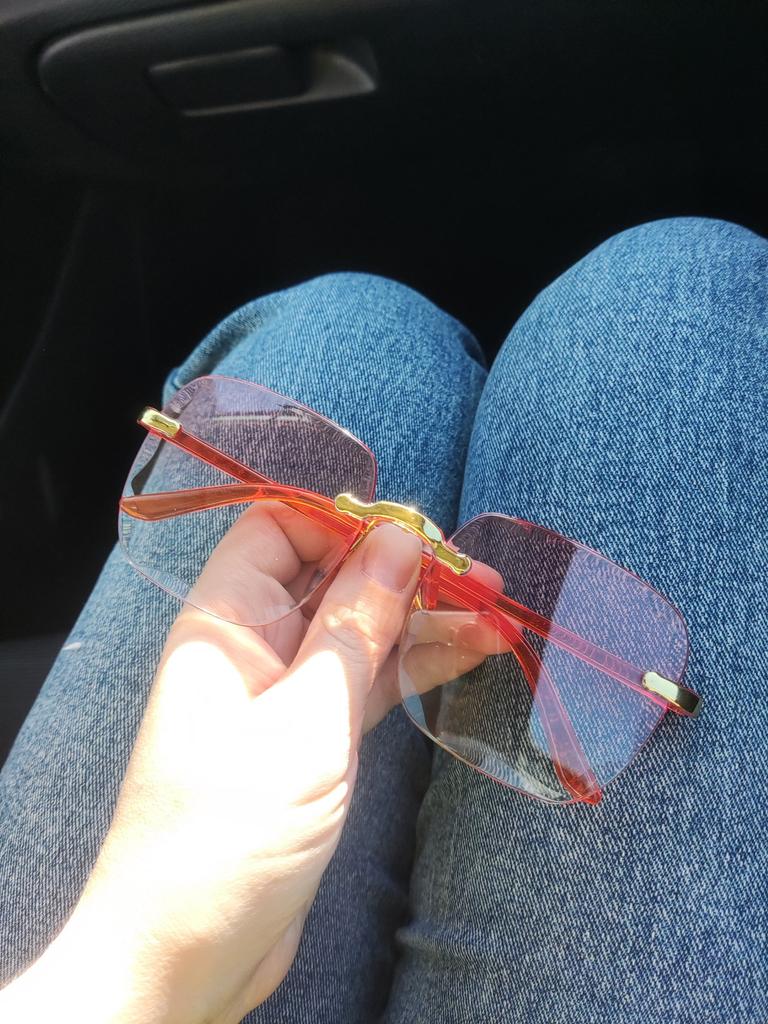 Крупные яркие очки с небольшим градиентом, без четкой оправы. Очки из пластика, так что края не острые. Выглядят неплохо, от солнца защищают слабо. Подойдут, чтобы прогуляться на закате, или как имиджевые, но не в самое пекло. На выбор 7 расцветок. Очки хлипенькие, но если носить аккуратно, сезон точно прослужат.
