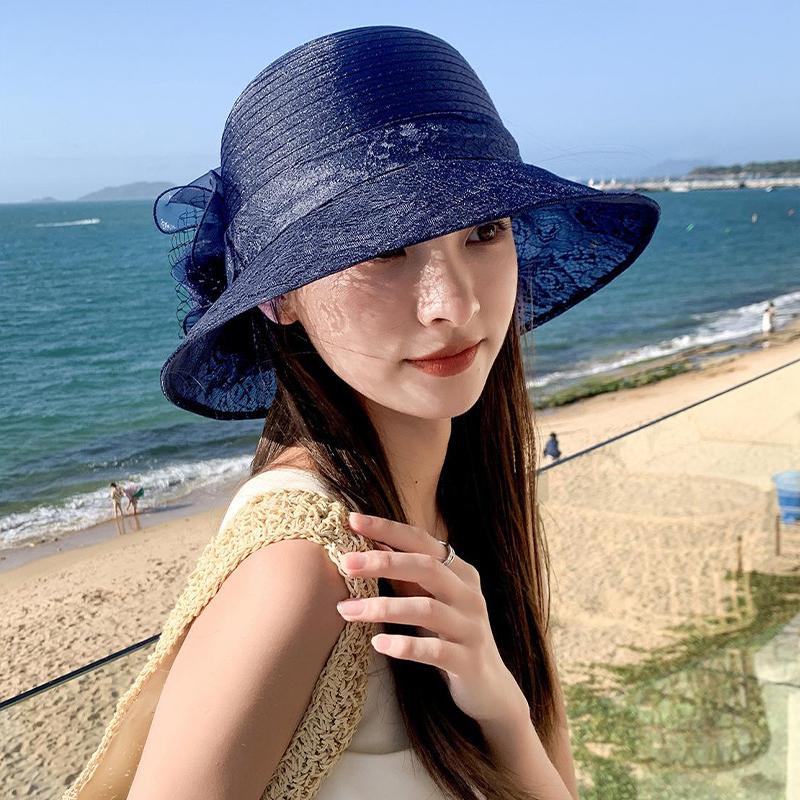 2025 Летняя женская элегантная шляпа из органзы с цветочным узором для бассейна, защита от солнца для путешествий, крутая шляпа рыбака