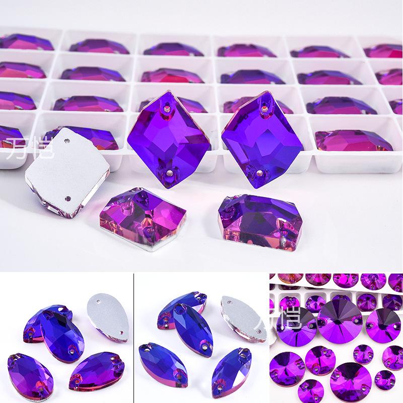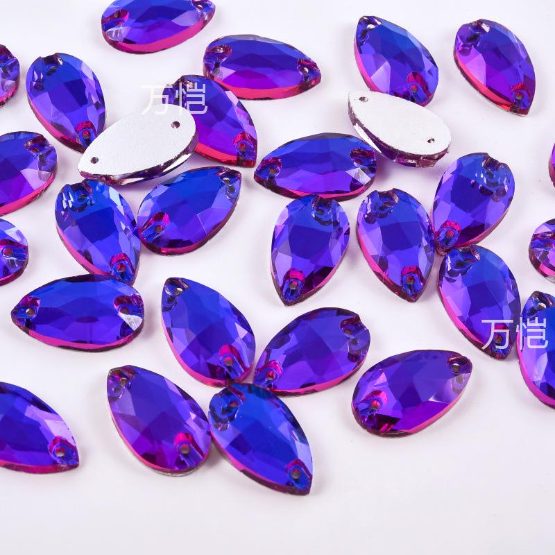 Фиолетовый бархатный стеклянный плоский ручная дрель для швов, конский глаз, капля воды, спутник, плоская пряжка особой формы с двумя отверстиями, декоративные украшения своими руками