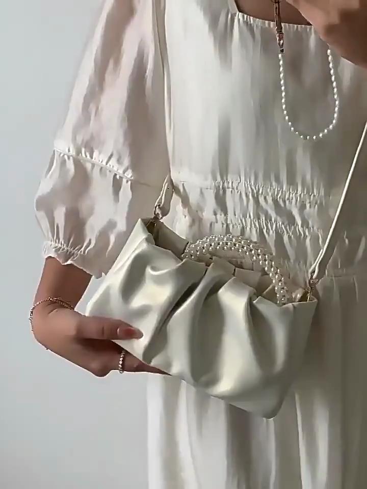 Женская элегантная сумка-клатч с жемчужной ручкой, роскошная яркая шелковая вечерняя сумка через плечо, женская маленькая плиссированная сумка-облако