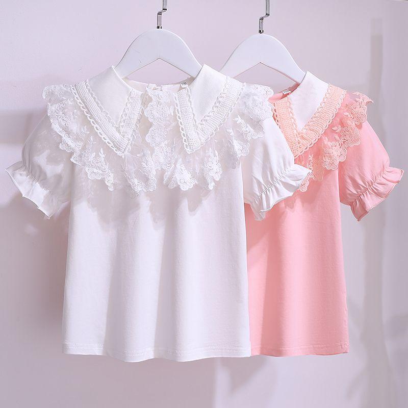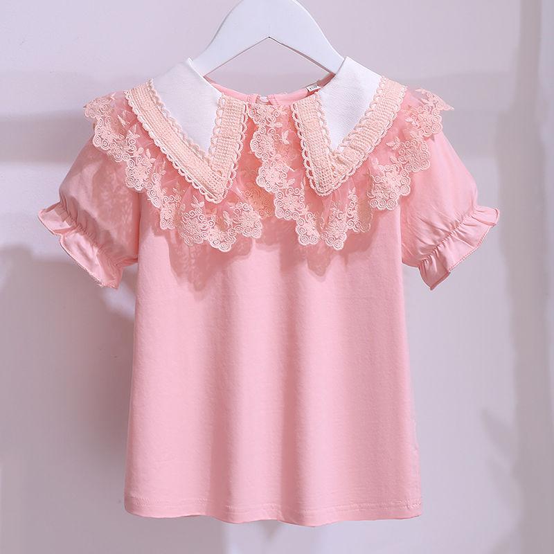 Детская футболка с коротким рукавом для девочек Детская одежда для девочек Новый повседневный модный топ с круглым вырезом для детей среднего возраста