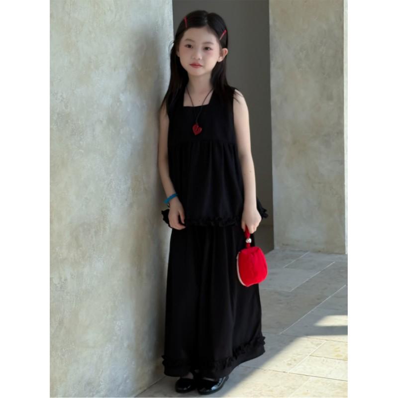 Летний однотонный удобный тонкий костюм для девочек среднего и большого размера, безрукавный кружевной пуловер + свободные брюки, повседневный комплект из двух предметов