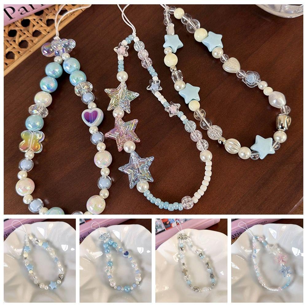 Ремешок для телефона с сердечками, облаками и звездами, подвеска из бисера, шнурок для телефона Y2K, подвески для мобильных телефонов, ювелирные изделия, подарок