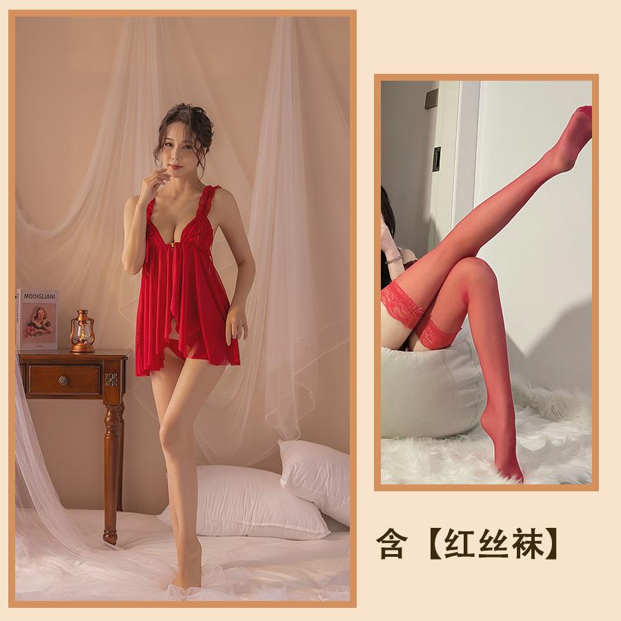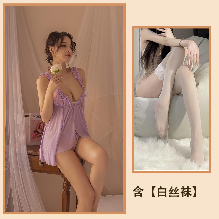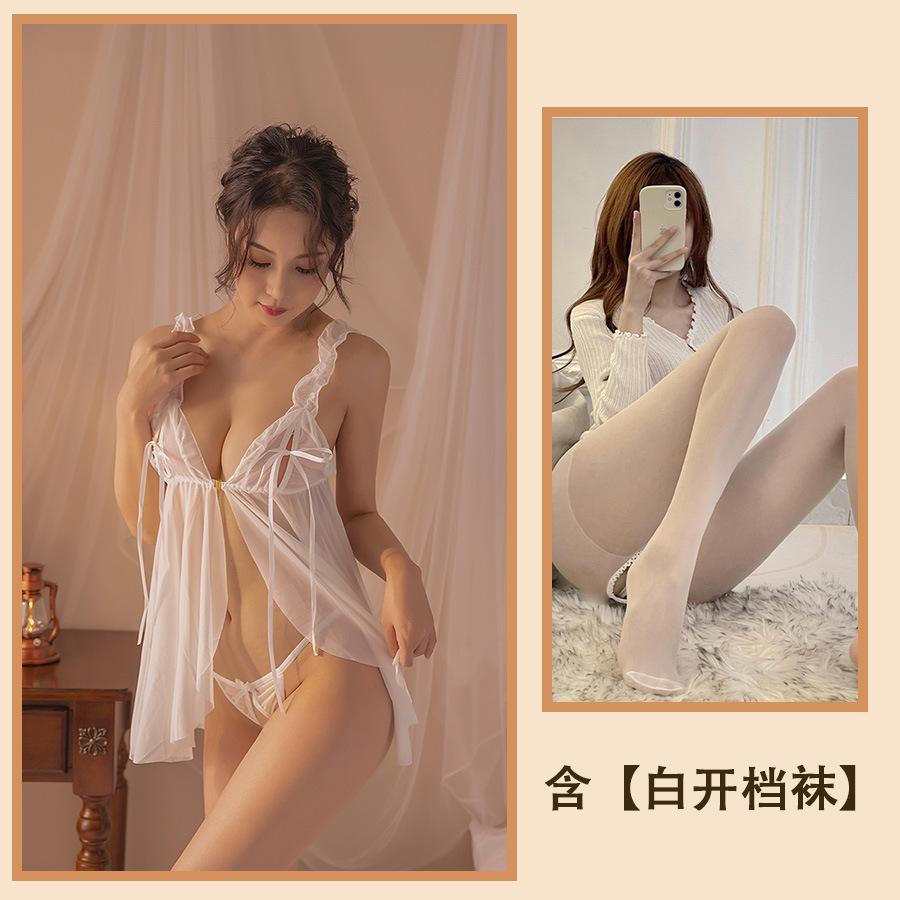 Сексуальное нижнее белье Прозрачная униформа для чулок Сетка Кружева Соблазн Разделение Вилка Полый Горячая Домашняя пижама Пижама