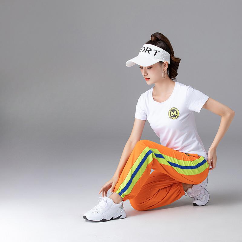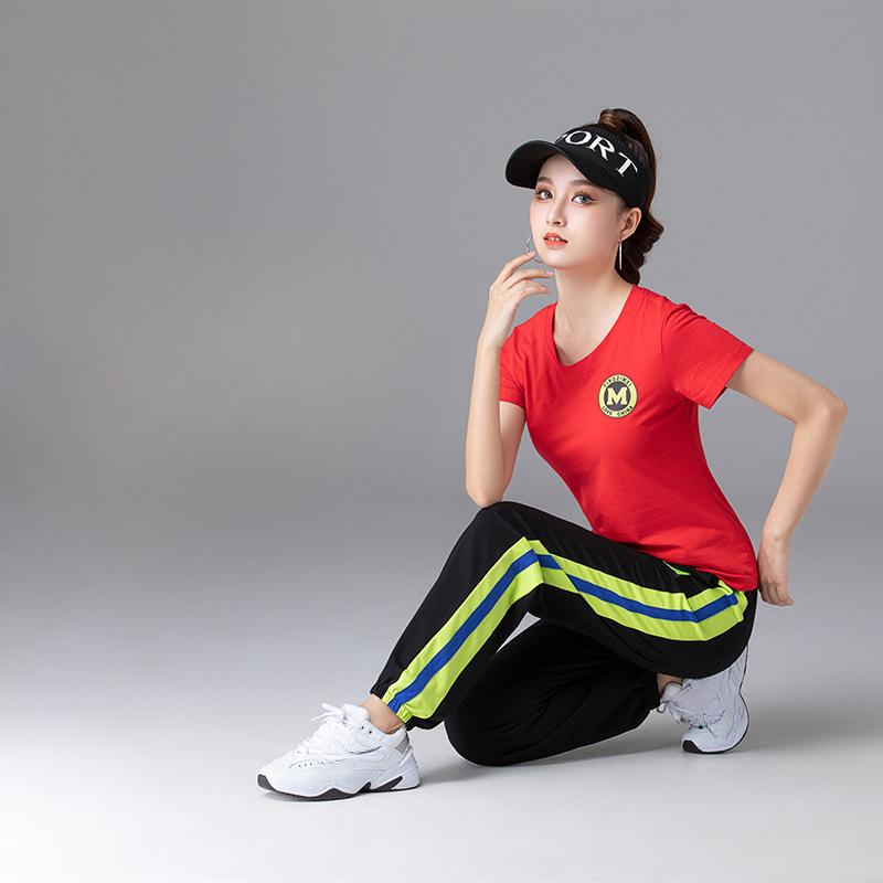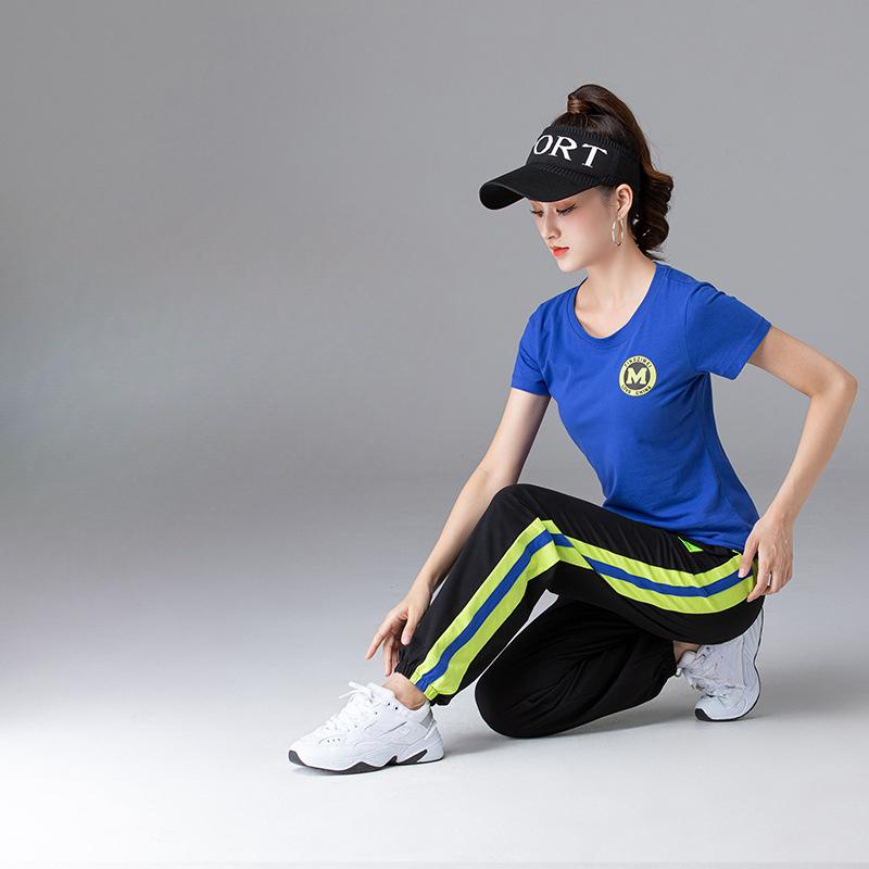 Летний женский повседневный костюм с короткими рукавами, спортивные брюки, фитнес-групповой костюм, костюм из 2 предметов