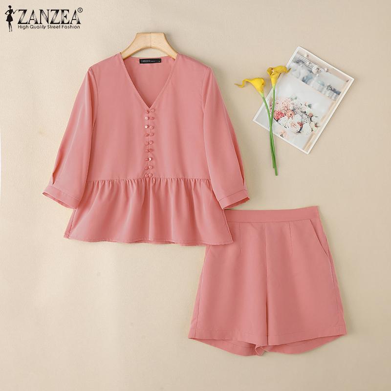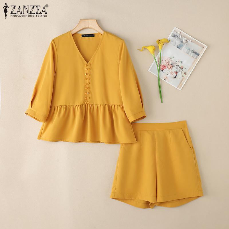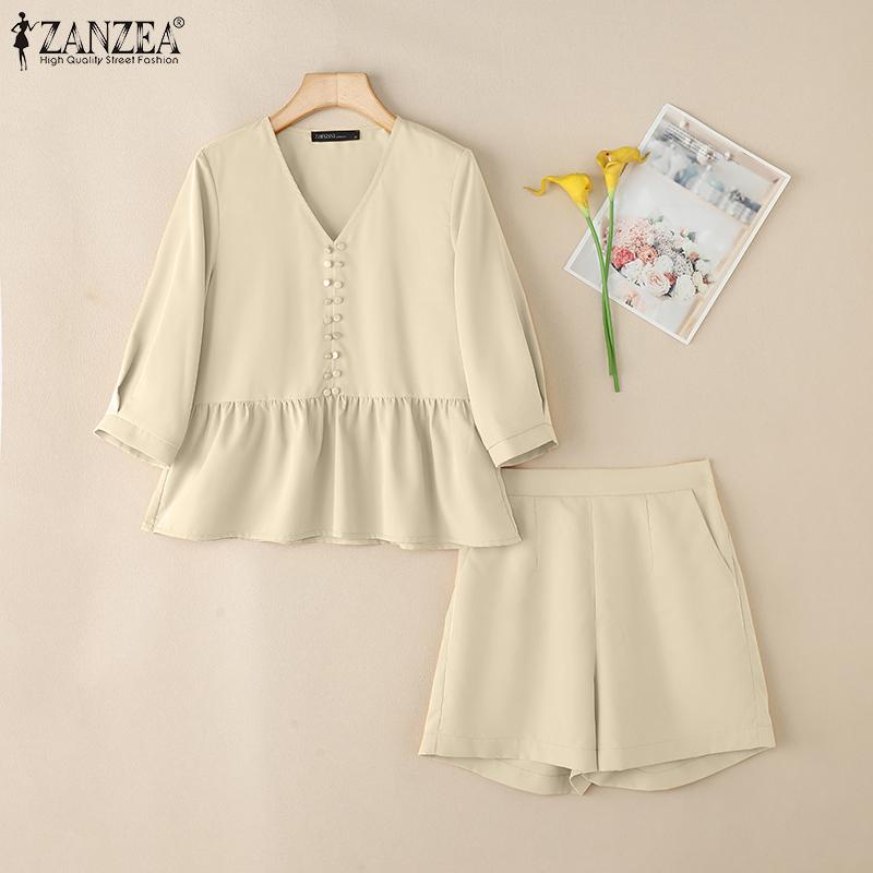 ZANZEA Женский летний комплект из двух предметов: блузка с рукавом 3/4 и шорты
