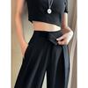 Новые летние черные широкие брюки для женщин с высокой талией, свободные повседневные брюки в пол, повседневные прямые брюки