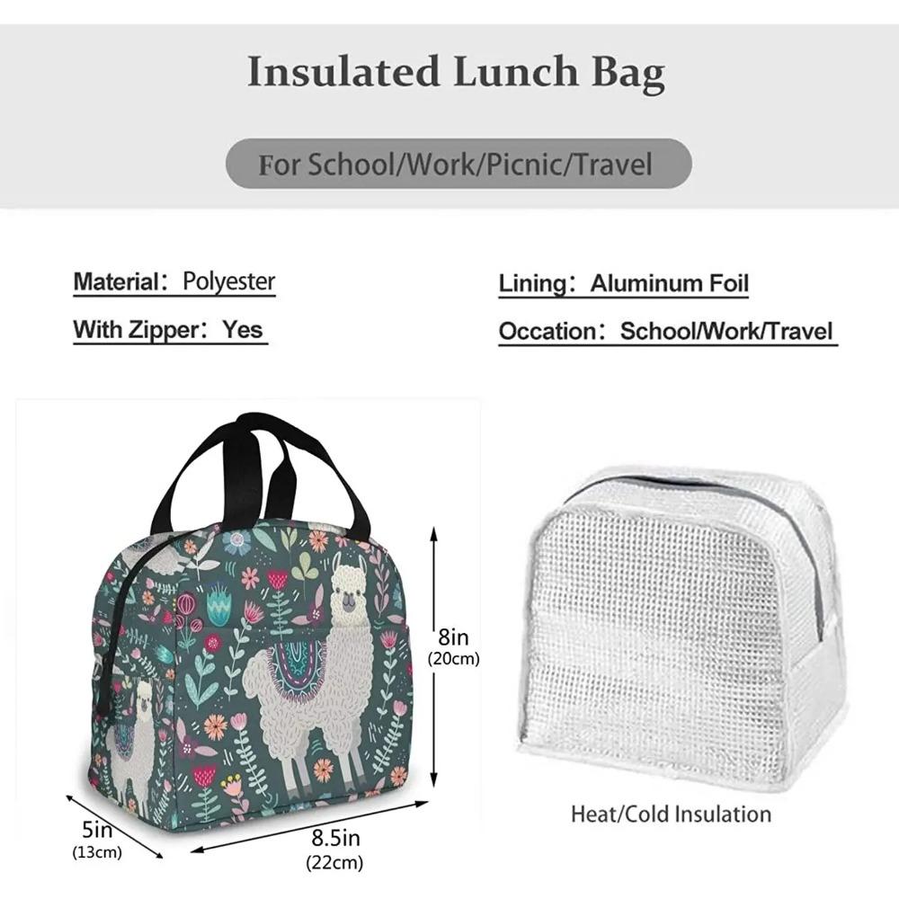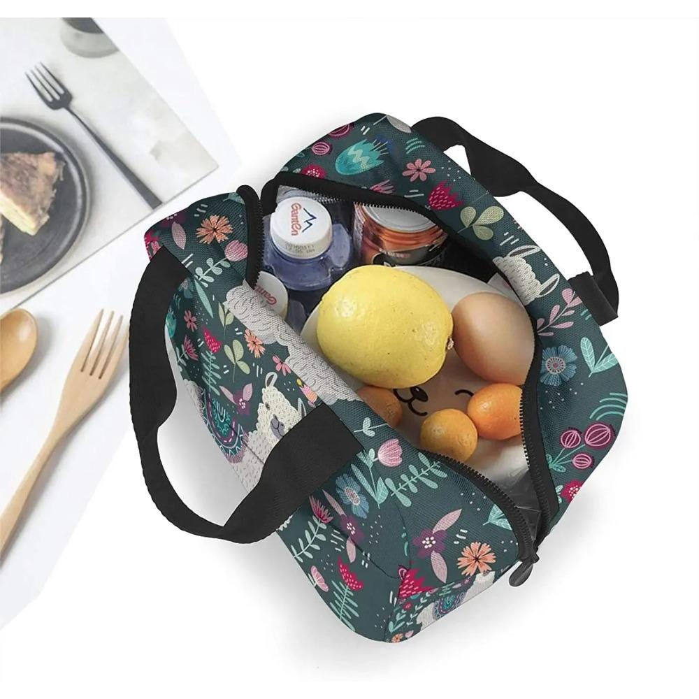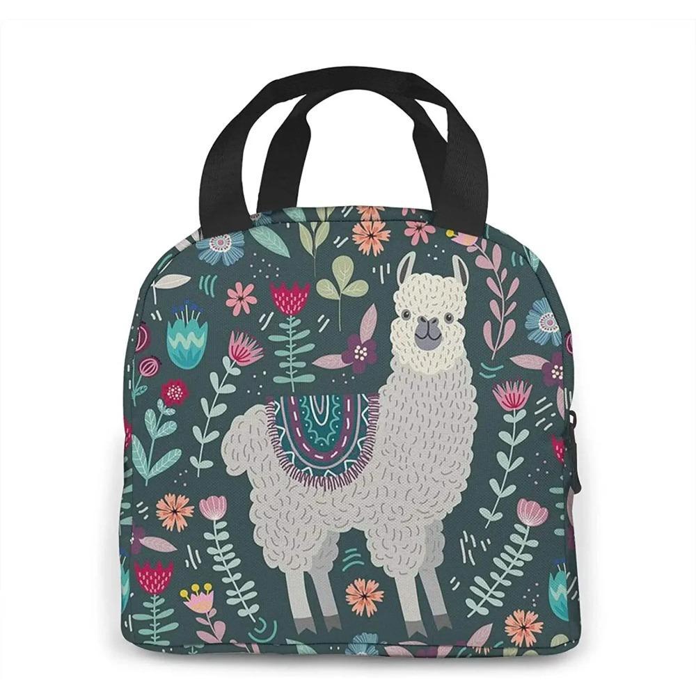 Сумка для ланча с цветочным принтом ламы для женщин, изолированный ланч-бокс с передним карманом для работы, многоразовая сумка-холодильник для пикника, похода, пляжа