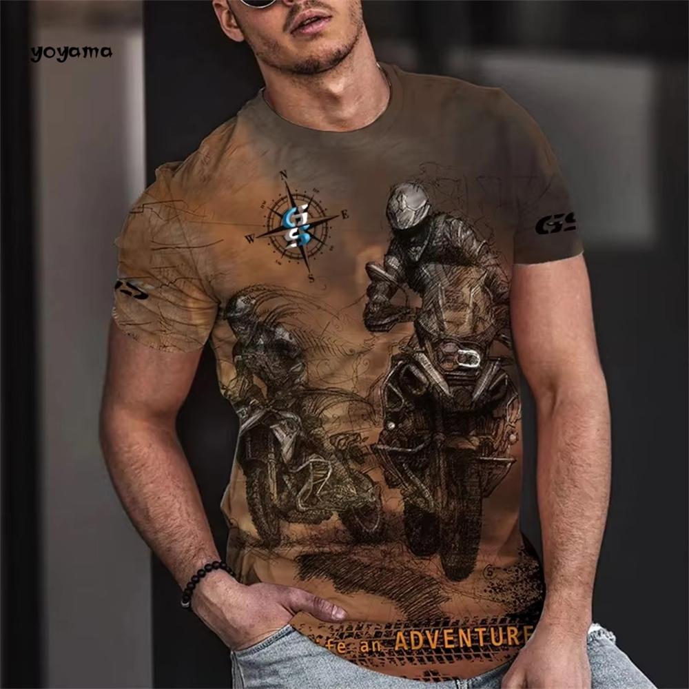 Винтажная мужская футболка с 3D-принтом в байкерском стиле, футболка с короткими рукавами, дышащая круглая горловина, летняя мужская повседневная одежда большого размера для улицы