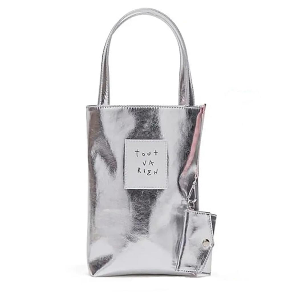 Сумка через плечо Сумка-тоут Милая сумочка Блестящая стильная ретро-сумка с логотипом из светло-серебристого цвета [DIVA Rose] Женская