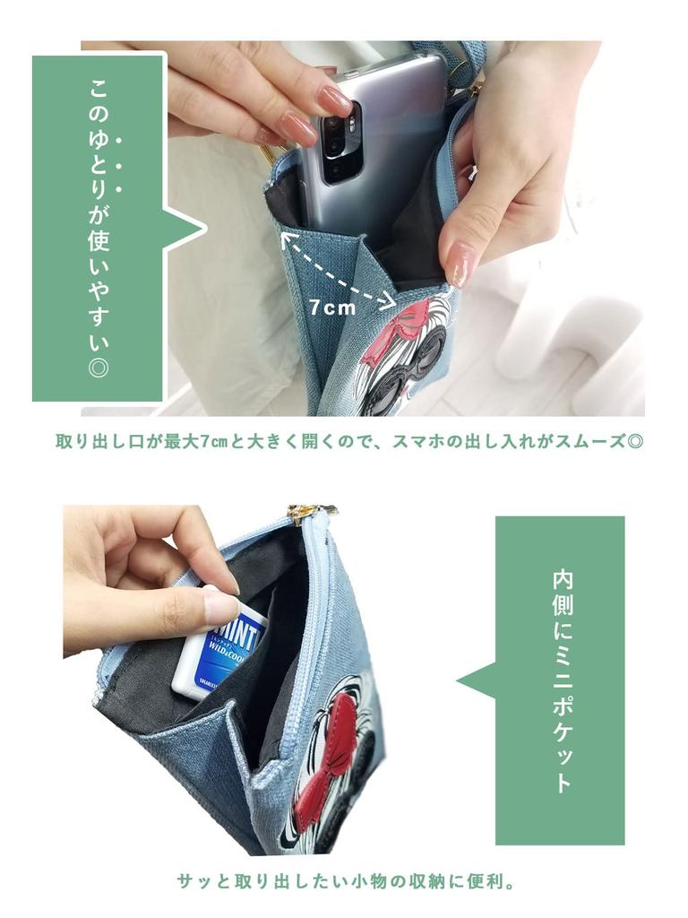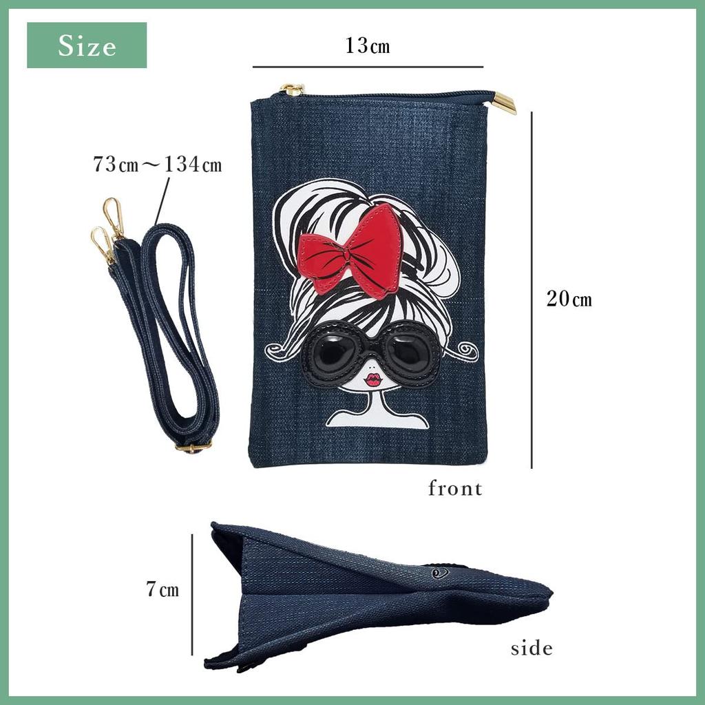 Smartphone Pouch Shoulder Bag Smartphone Pochette Denim Pouch Sacoche Shoulder Sunglasses Girl [DIVA Rose] Women's (Indigo Blue)