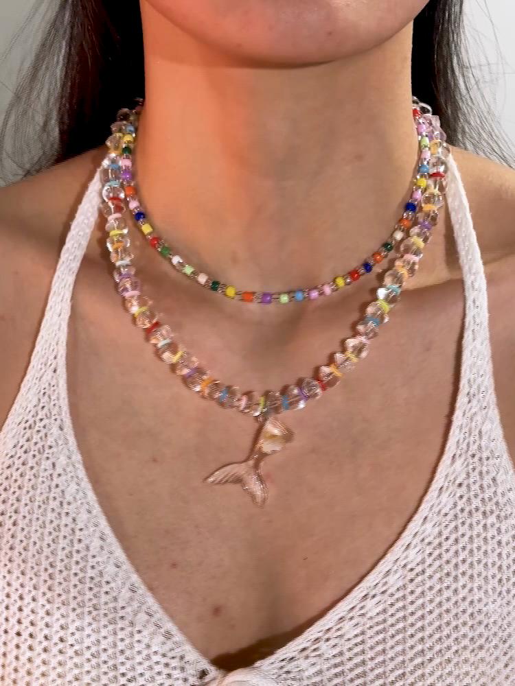 Летний популярный товар, полупрозрачное ожерелье с подвеской в виде русалки из гравия для женщин, пляжная крутая бижутерия, цветное ожерелье в стиле допамина