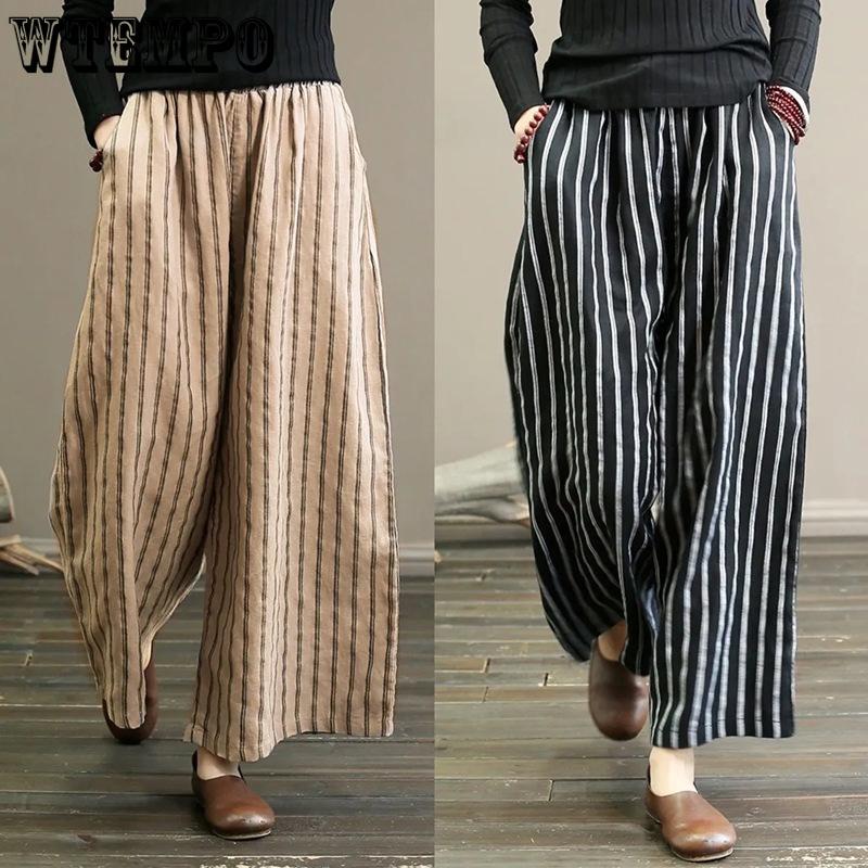 Художественные хлопковые и конопляные полосатые широкие брюки летние женские повседневные прямые брюки большого размера — купить товар онлайн с бесплатной доставкой по всему миру!