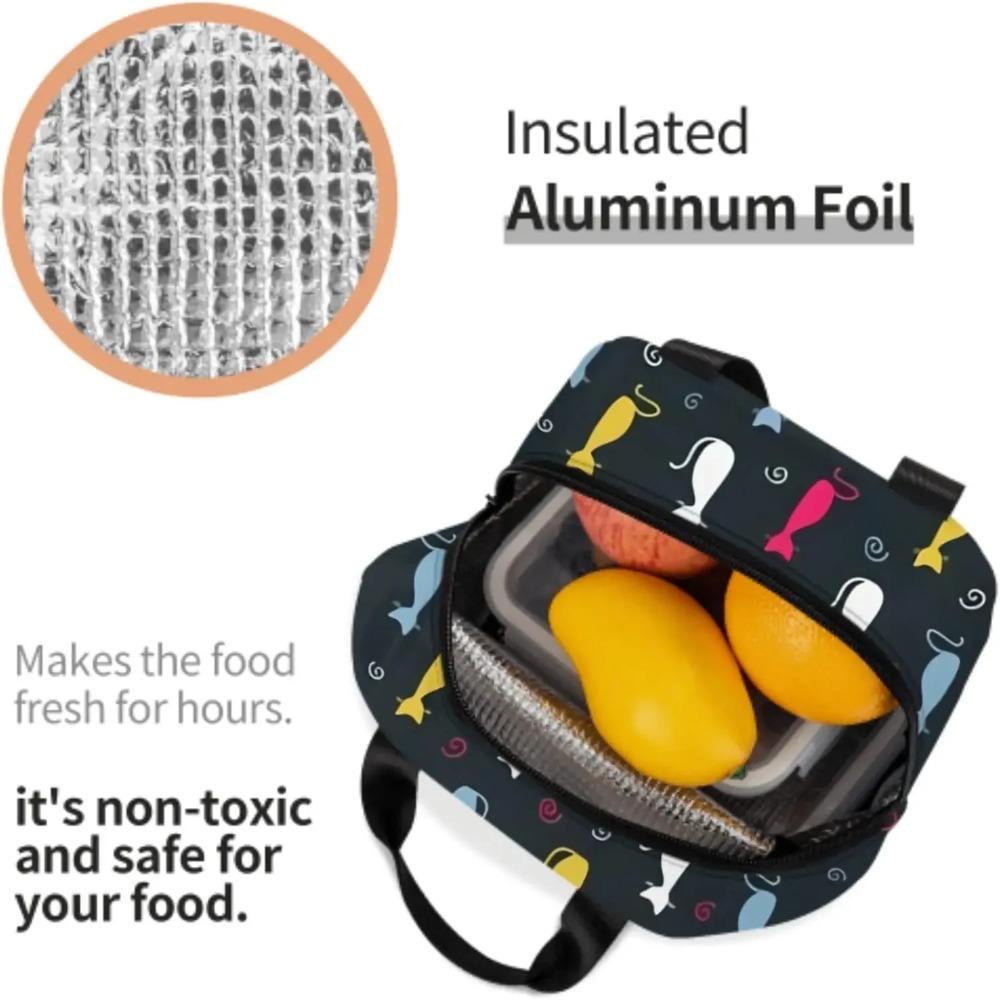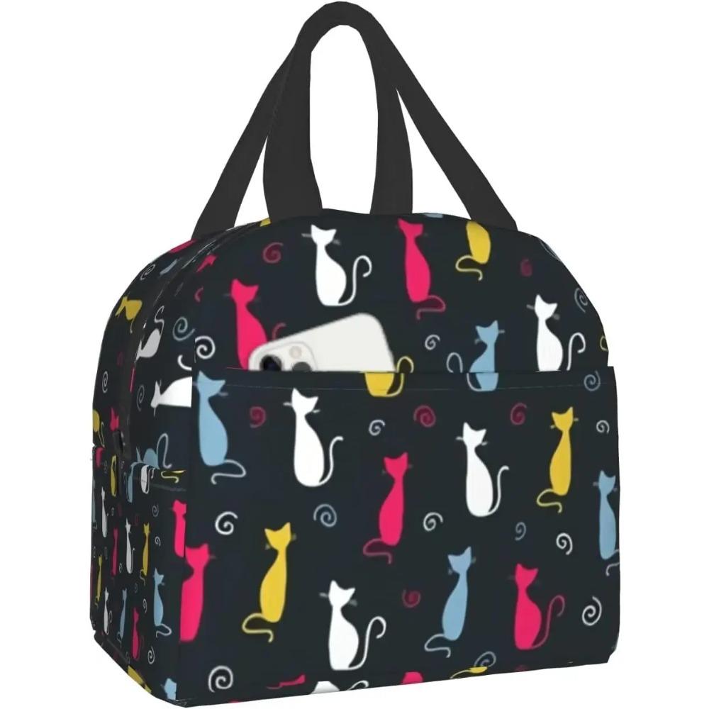 Милая цветная сумка для обеда с котами, забавная сумка для обеда с котом, термосумка для многоразового использования с карманом для женщин, работы, пикника, школы