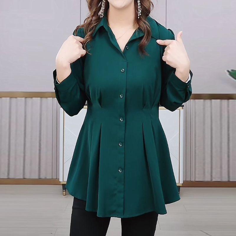 Элегантная винтажная весенняя блузка для женщин, облегающая рубашка высокого качества, большие размеры, контроль живота