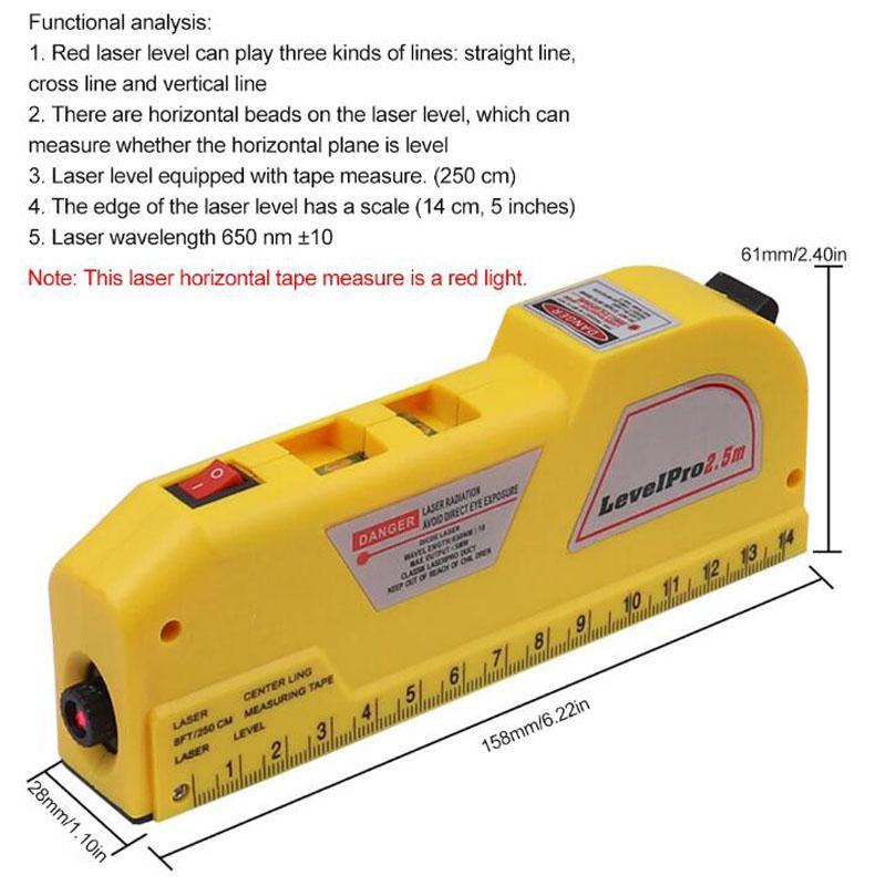 3.Лазерный уровень Dumpy оснащен круглой линейкой.. (2,5 метра, метрическая/имперская система мер).