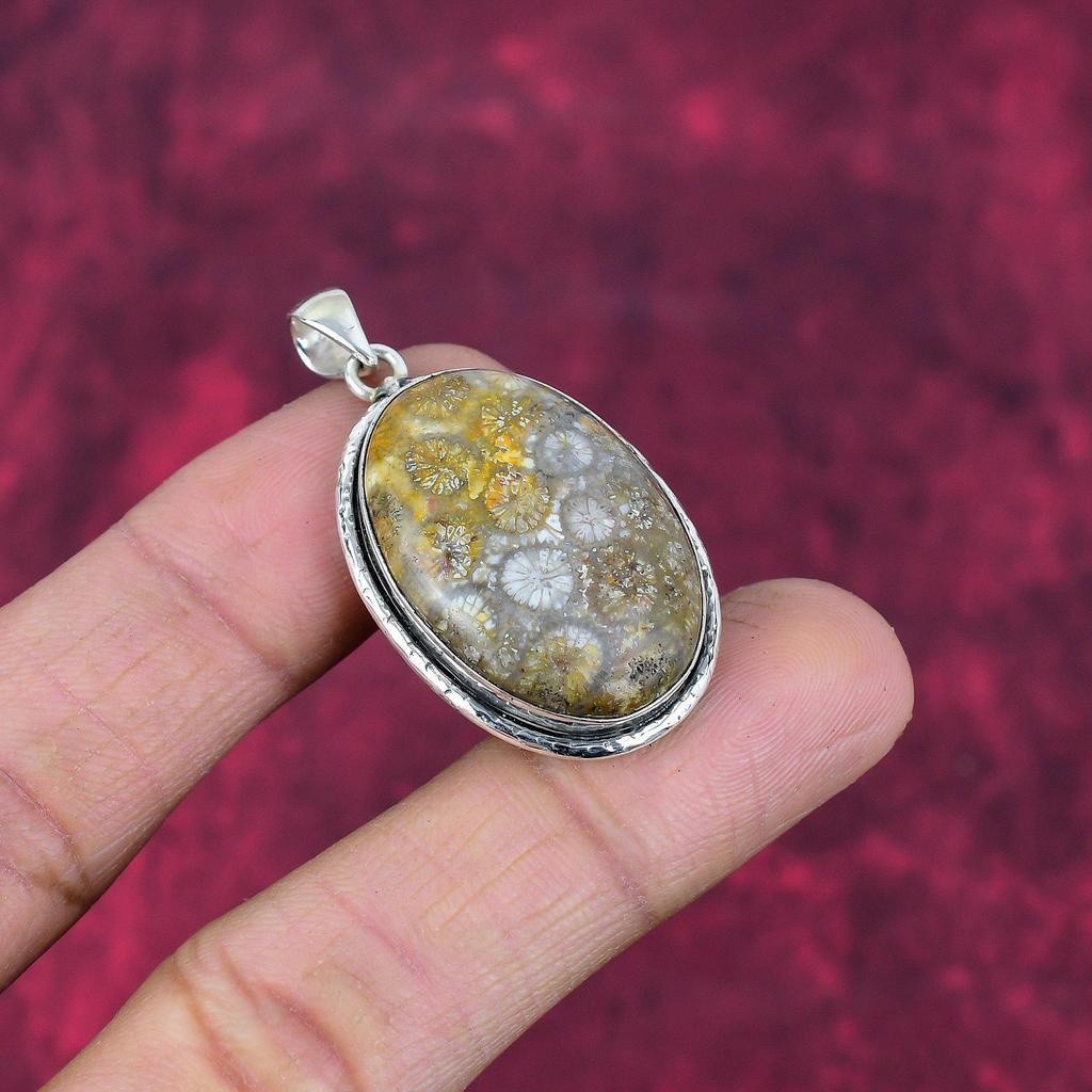 Подвеска из ископаемого коралла из стерлингового серебра 925 пробы, ювелирные изделия ручной работы с драгоценными камнями, подарки для жены, абсолютно новый ювелирный кулон