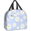 Черная сумка для ланча с цветком ромашки, маленькая термоизолированная коробка для ланча с передним карманом, кавайные сумки для ланча для девочек и мальчиков, замораживаемая коробка бенто
