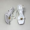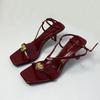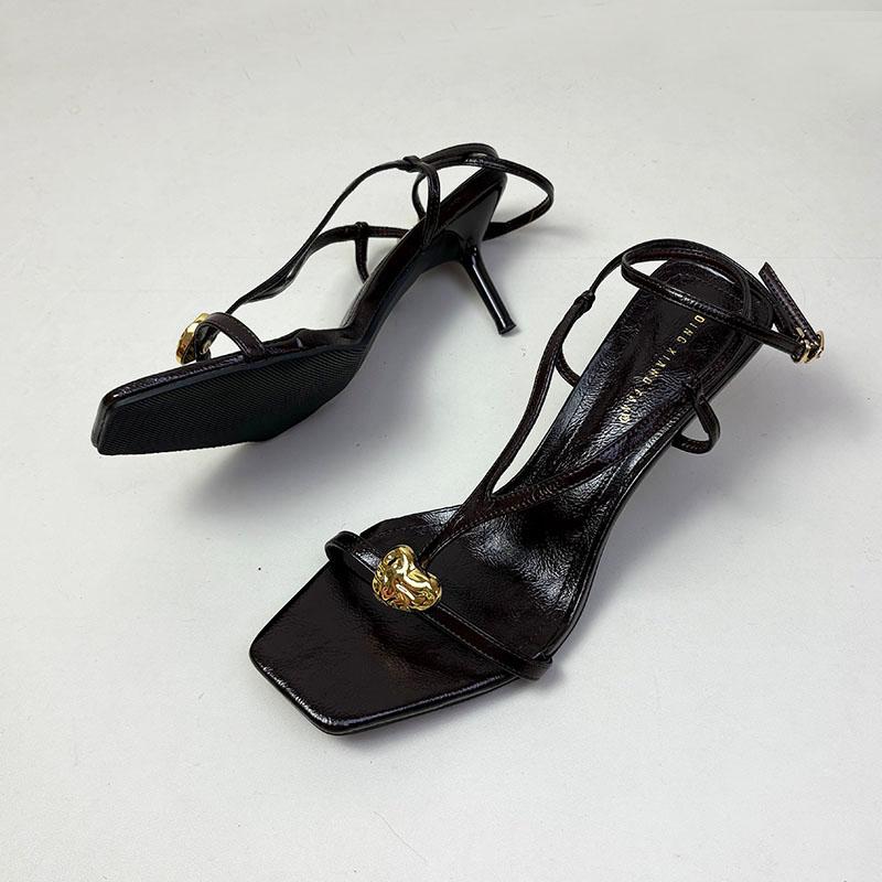 Модные туфли-лодочки с металлической пряжкой на щиколотке, женские туфли на тонком каблуке, узкая женская обувь с неглубокой резинкой, квадратный носок, женские туфли на высоком каблуке