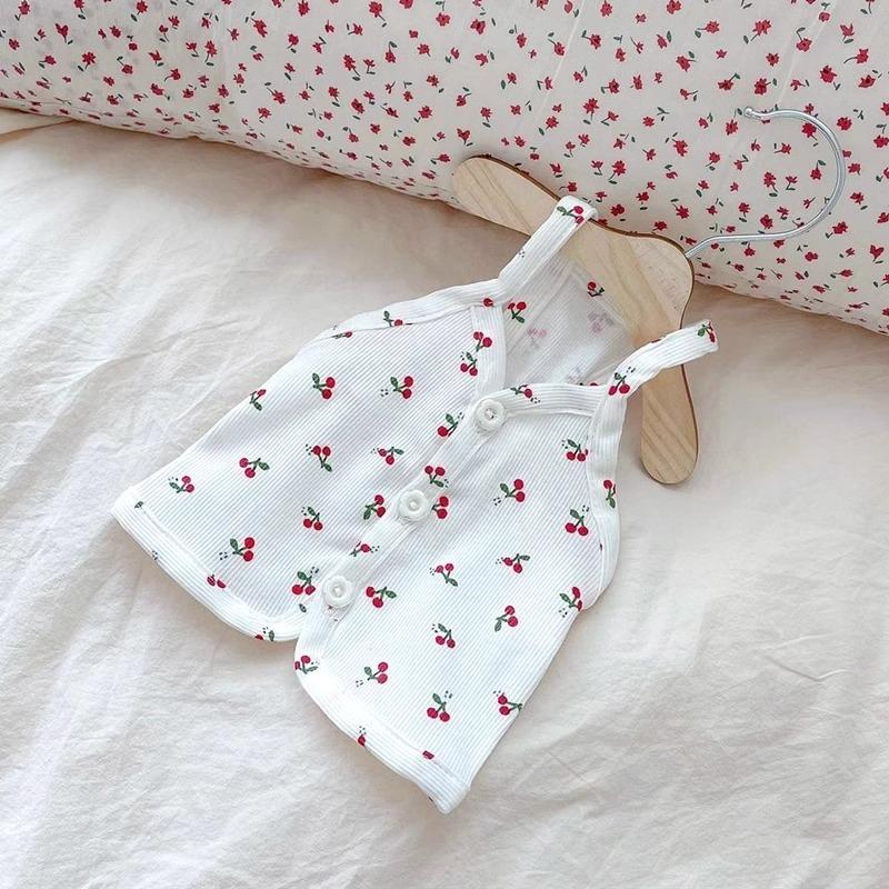 Fresh and cute little cherry suspender dog cute spring and summer small dog Bigbear Teddy Pomeranian pet breathable clothes