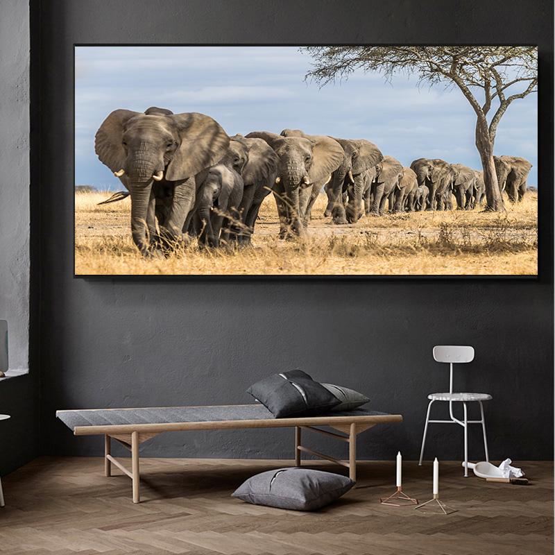Черно-белые постеры и принты с животными, живопись на холсте, семейная картина с африканским диким слоном на стене, домашний декор, без рамы