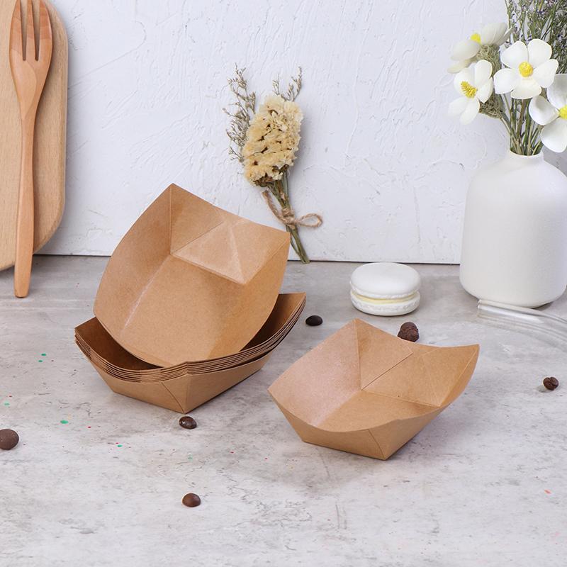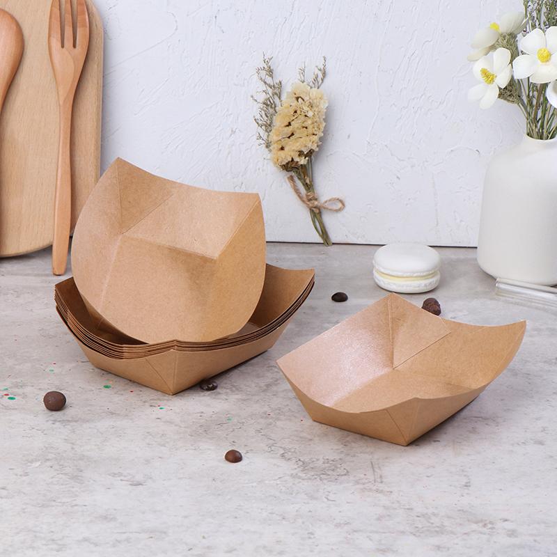 Прочность:Изготовленные из высококачественной крафт-бумаги, эти жиростойкие лодочки для еды имеют прочные стенки и надежное основание, что позволяет вмещать тяжелые блюда, не гибая и не ломаясь.