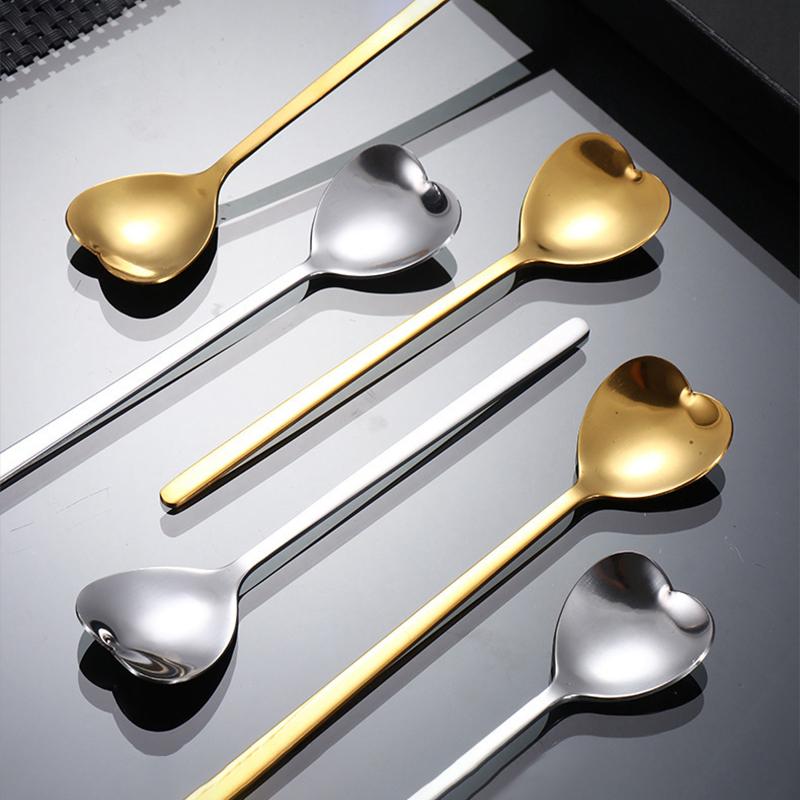 Ложка из нержавеющей стали с длинной ручкой, ложка для смешивания меда, креативная ложка для любви, домашняя десертная ложка для мороженого, золотая кофейная ложка