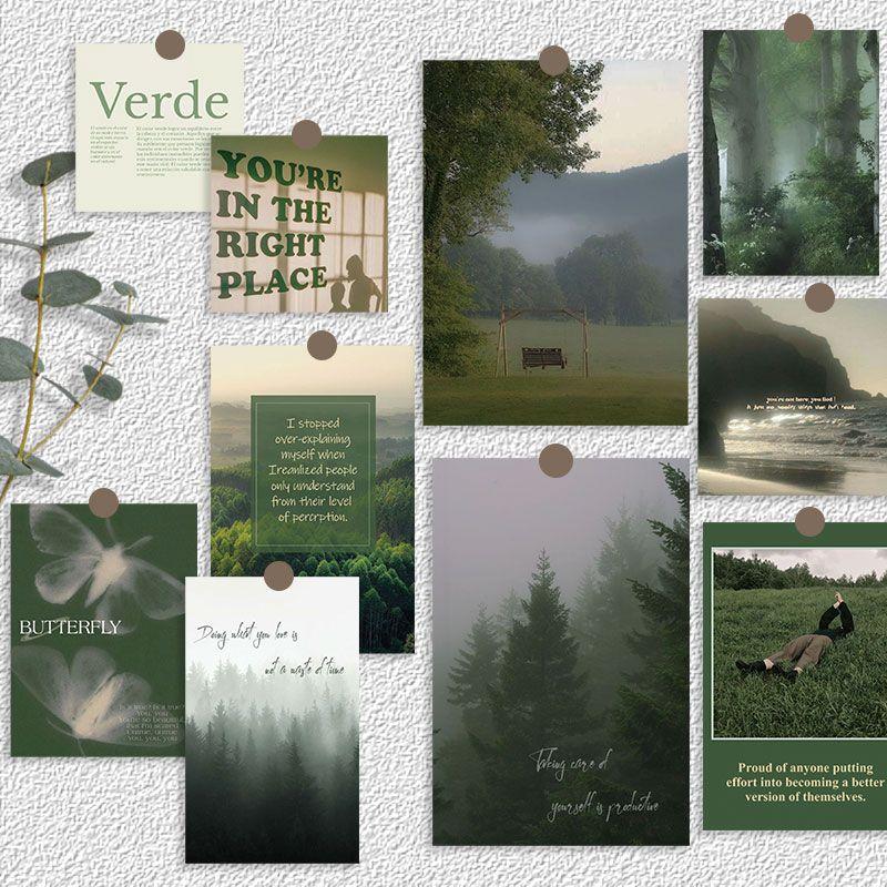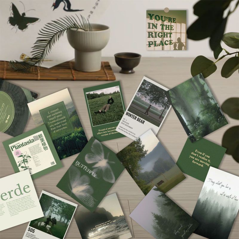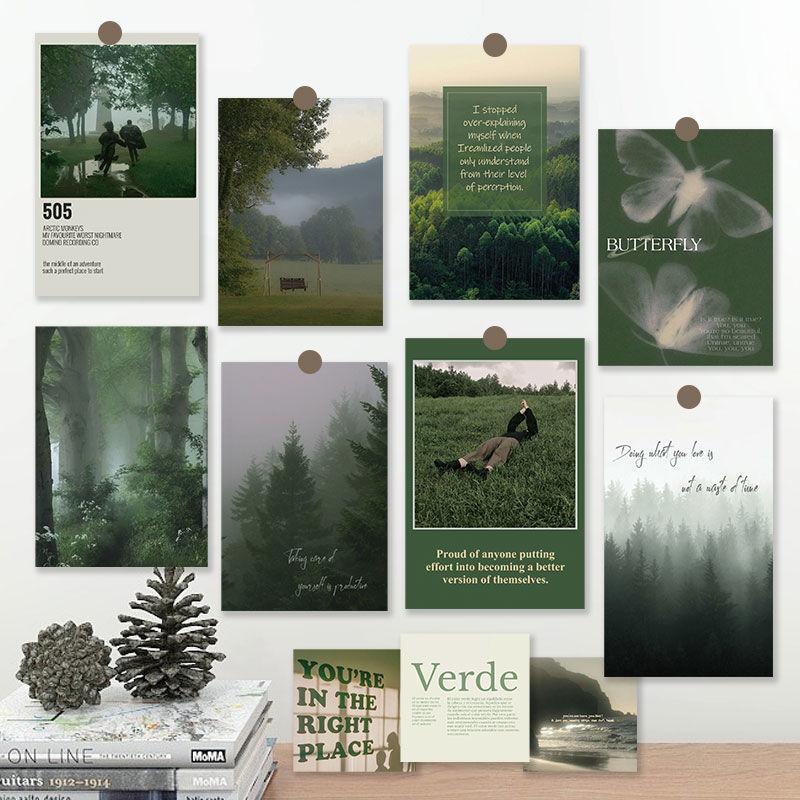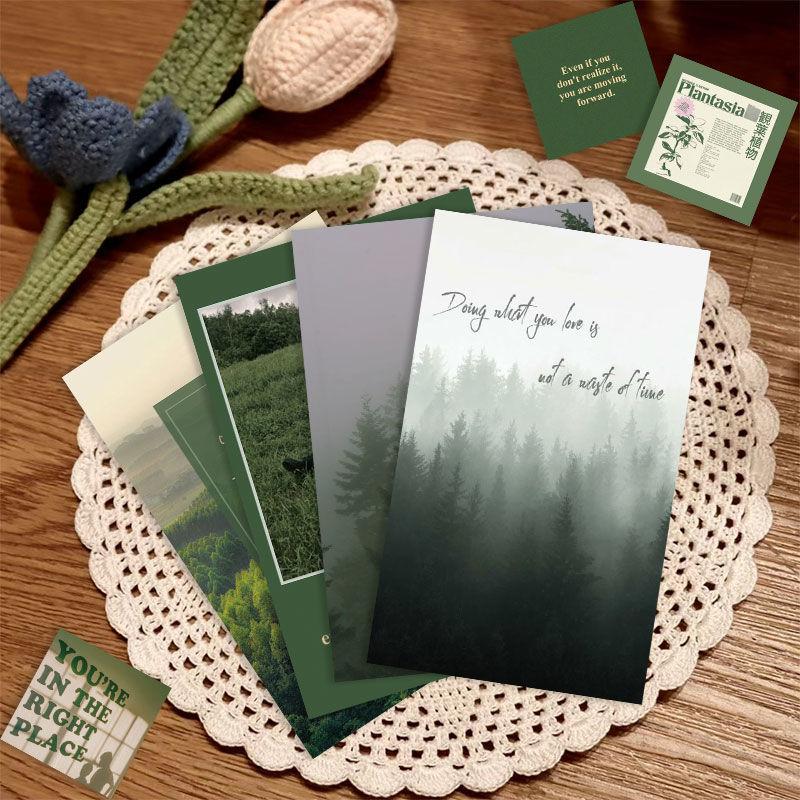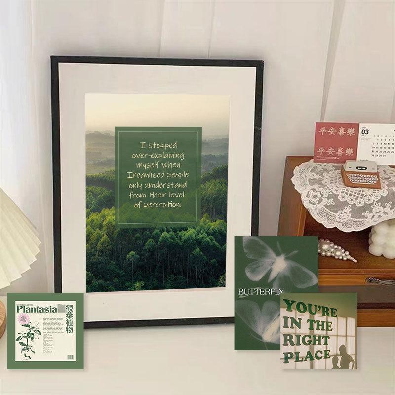 15/30 постеров-зеленая туманная горная открытка для внутреннего ресторана, кофейни, спальни, настенный фон, декоративные наклейки на стену своими руками (Нестандартный размер 60-150 мм)
